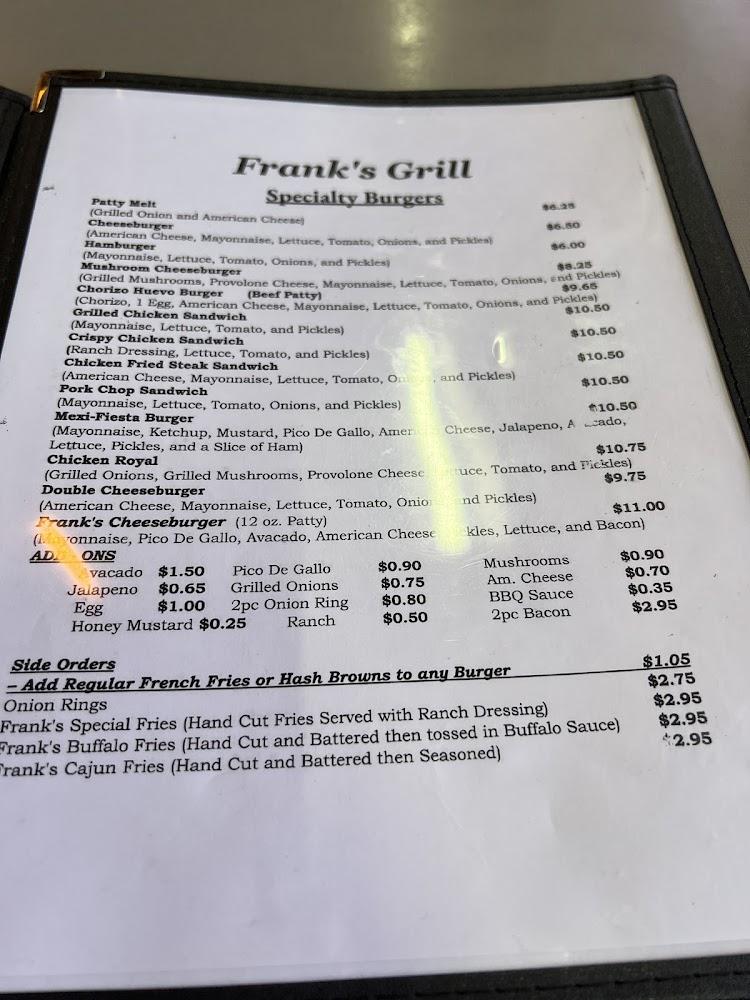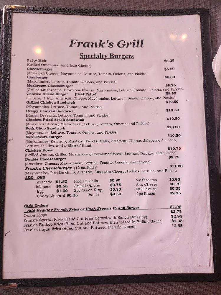 Frank's Grill boasts a diverse menu that attracts everyone from early risers to night owls. Breakfast dishes feature a mix of classics like omelettes and pancakes. Their specialty burgers and comforting lunches appeal to those looking for heartier options. Unique dishes like chicken fried steak with eggs make mornings shine. The menu also includes tasty sides like hash browns, biscuits, and house-made gravy. There are plenty of options for both adults and kids, ensuring everyone can find something to enjoy. It’s a spot where comfort food reigns, and flavor unfolds with each dish.